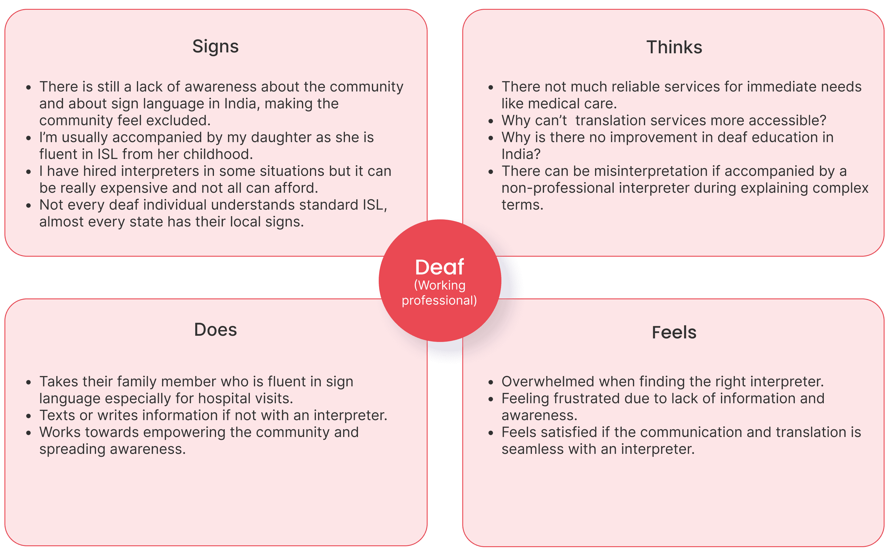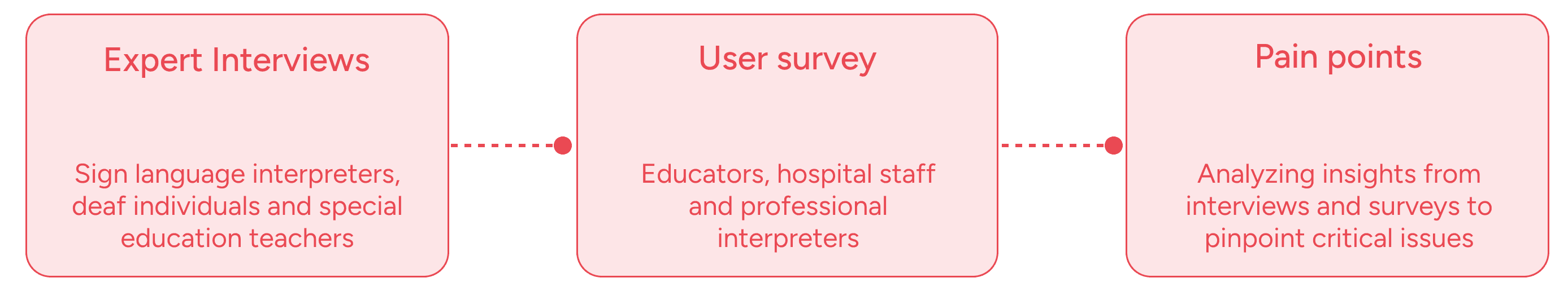 To understand existing accessible communication services and interventions, an in-depth analysis of available technologies, solutions, and research studies. This included exploring AI-powered sign language recognition, motion-capture gloves, computer vision models, and platforms that translated media and information in sign.