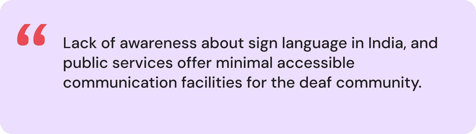 Despite such significant population who rely on sign language for communication, only a small fraction of the population is proficient in sign language. This communication gap makes it challenging for the deaf community to interact with the wider society.