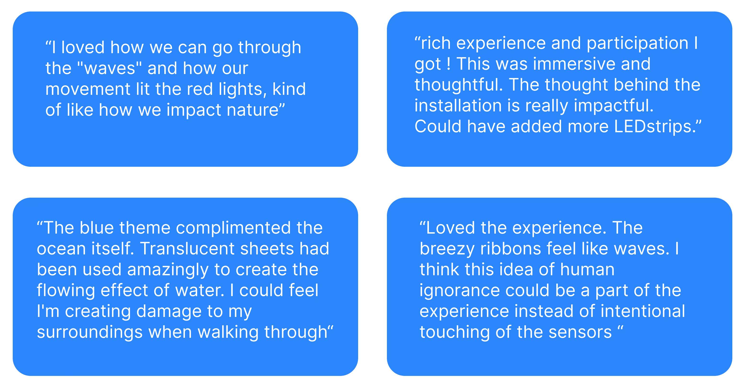 These are some of the feedback of people who participated in the experience. They described their feelings of from feelings of calm to surprise when the waves turned red.